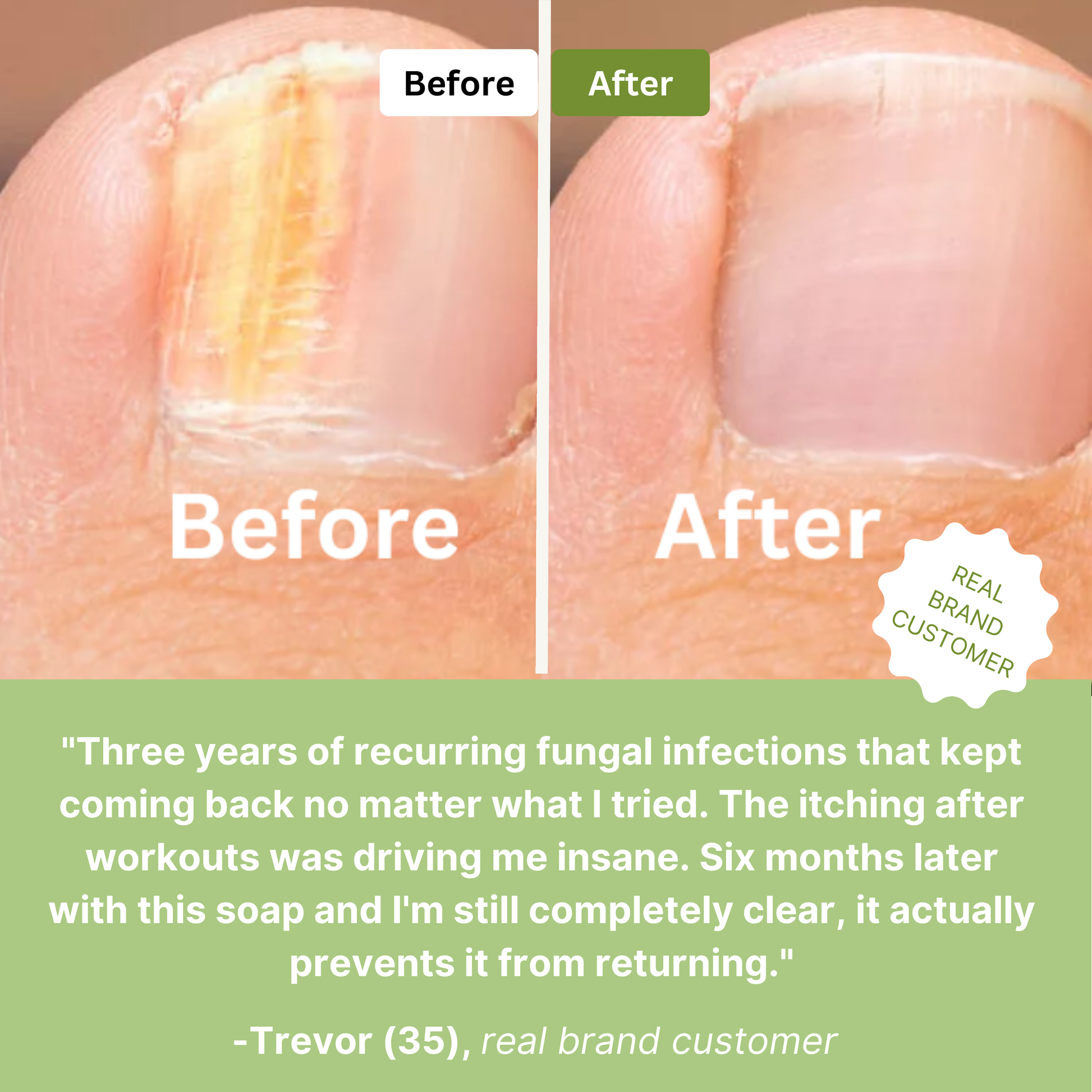 Yes. Lunia was built for chronic, recurring fungus — the kind that creams and powders never seem to fix. Our formula combines clotrimazole (a dermatologist-trusted antifungal) with soothing botanicals like tea tree and eucalyptus. That’s why customers who’ve “tried everything” say Lunia was the first soap that actually kept the itch and odor from coming back.